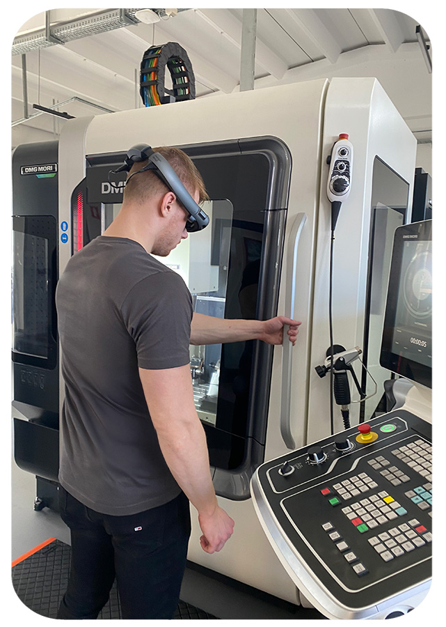 Za potrebe vajeništva in industrije smo razvili koncept učenja s pomočjo najnovejše tehnologije za virtualno resničnost. Tako imenovana obogatena resničnost AR nam omogoča generacijo in manipulacijo 3D objektov, ki so projecirani v živo okolje. Prikažemo lahko navodila za delo v realnem okolju in tako omogočimo najbolj zanesljivo in direktno obliko učenja, saj je znanje uporabniku projecirano v živo okolje, kjer ima edinstveno možnost, da se ta nauči delati na orodju za katerega se ta izobražuje. Lahko je to CNC ali kakšne drugi mehanski stroj ali pa prikaz delovanja nekega tehničnega programa, kjer so navodila projecirana na točko, iz katere se učimo.